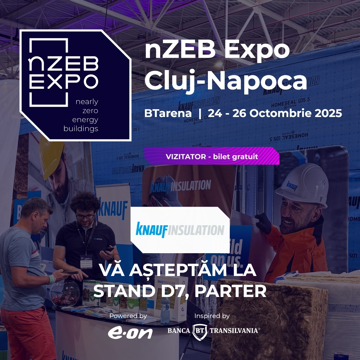 Knauf Insulation participă și în acest an la nZEB Expo, așa că vă dăm întâlnire din nou la cel mai important eveniment de construcții din România, în weekend-ul 24 – 26 octombrie, la BTarena din Cluj-Napoca, stand D7, parter.